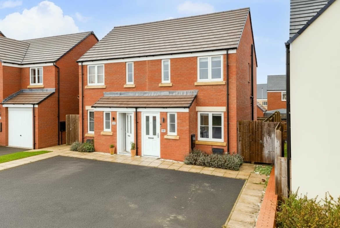 Occupying an attractive position on the sought-after Kennard Close in Weldon and enjoying open views across fields to the front, this well-presented two-bedroom semi-detached home offers modern living in a peaceful setting and is available with no onward chain. The property is entered via a welcoming entrance hall which provides access to a convenient downstairs WC, ideal for guests and everyday practicality. From here, you are led into the comfortable lounge, a bright and inviting space perfect for relaxing. The lounge flows through to the kitchen/diner at the rear of the property, creating a sociable layout that works perfectly for both day-to-day living and entertaining. The kitchen/diner offers ample space for cooking and dining, with double doors opening directly onto the rear garden, allowing natural light to fill the room and providing a seamless connection to the outdoor space. Upstairs, the first floor comprises two generously sized bedrooms, both well presented and offering plenty of space for furnishings. A modern family bathroom serves the first floor and is fitted with a contemporary suite. Externally, the property continues to impress. To the front, there is off-road parking for two vehicles, while the open field views enhance the sense of space and countryside feel. The rear garden has been thoughtfully landscaped for low maintenance and maximum enjoyment, featuring a stylish decking area that is perfect for outdoor dining and entertaining, along with an artificial lawn that provides year-round greenery with minimal upkeep. This fantastic home is ideal for first-time buyers, downsizers or investors seeking a move-in-ready property in a desirable Weldon location.